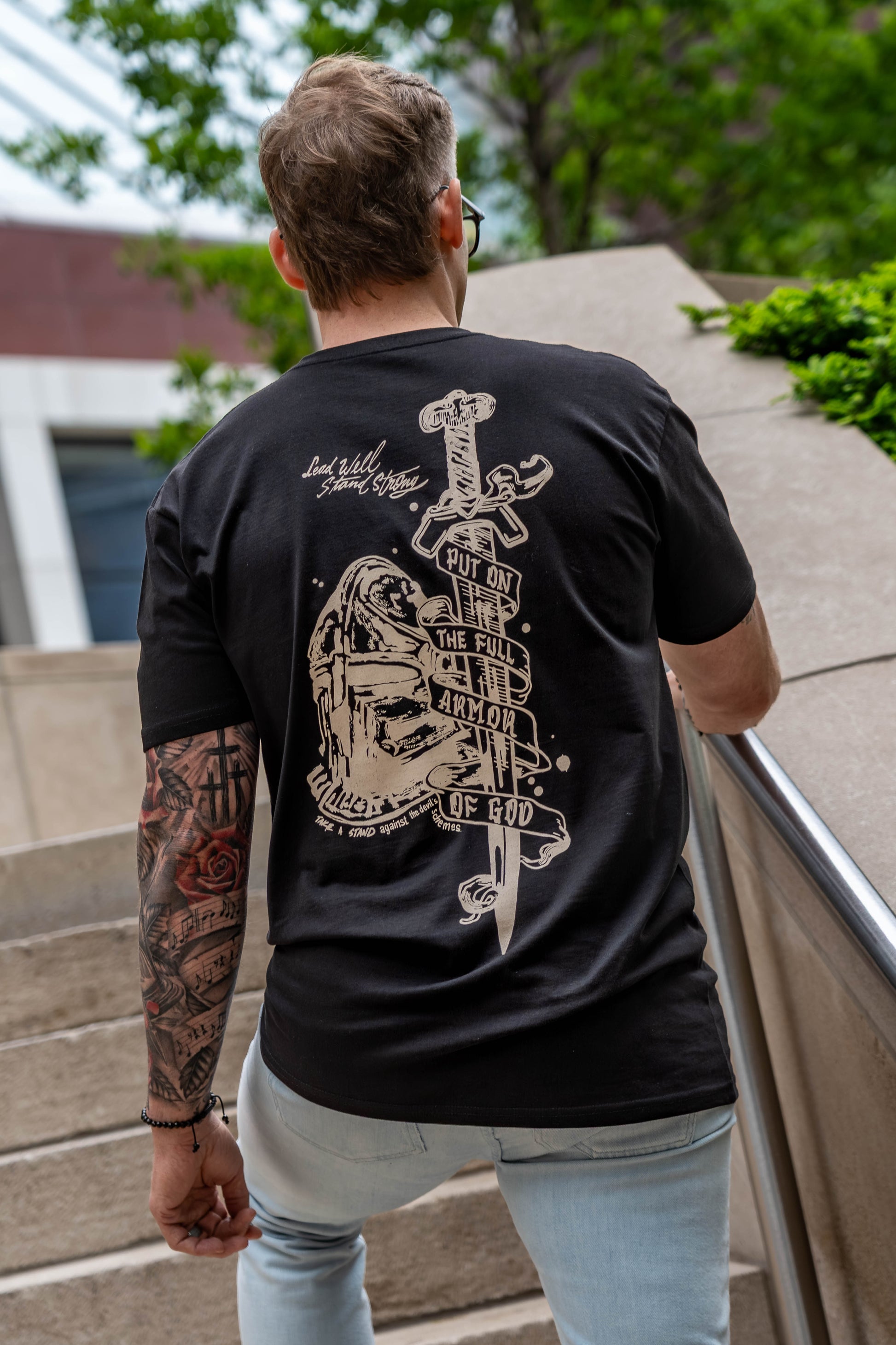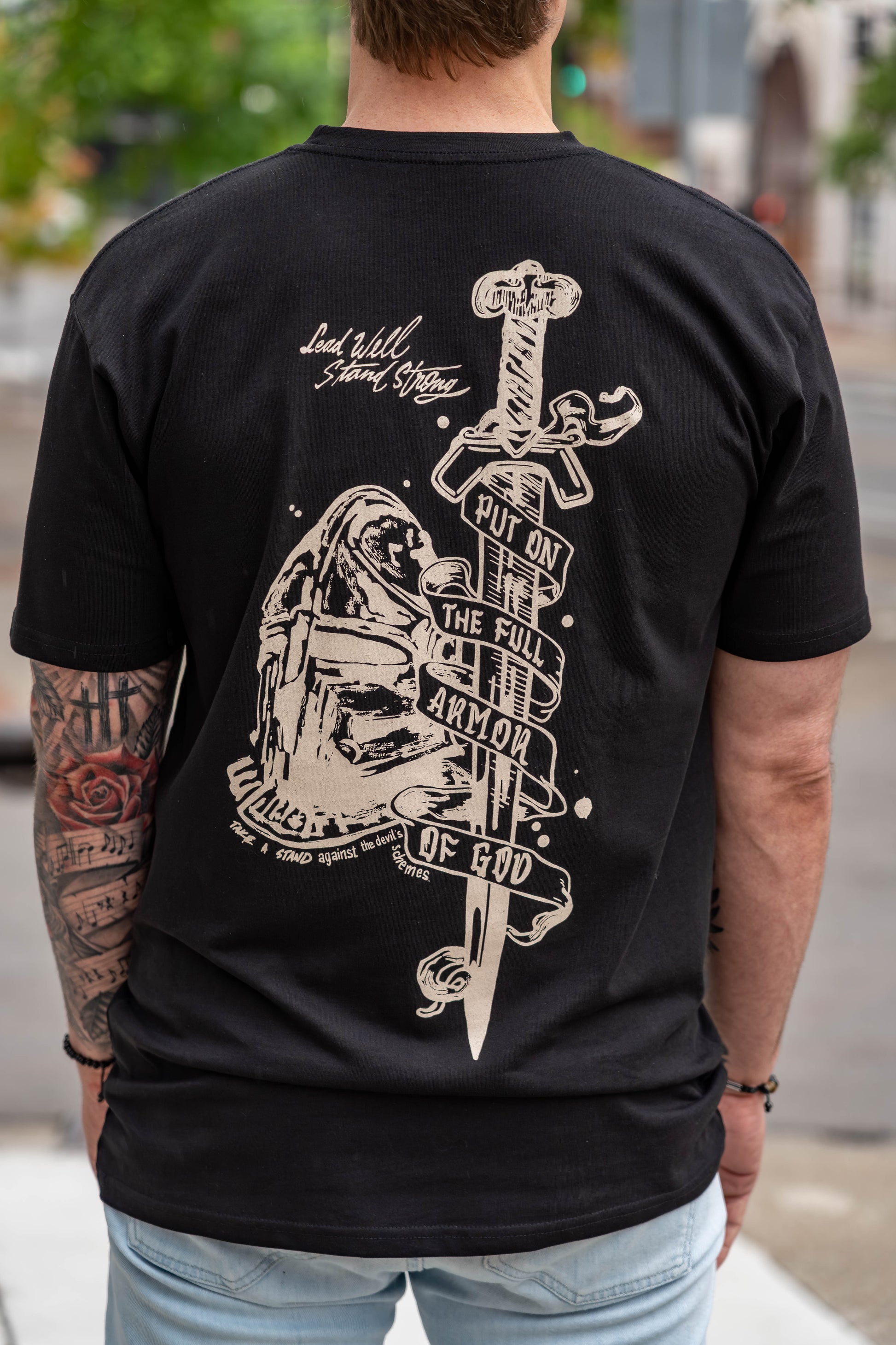 This tee is more than a design--it's a daily reminder of the protection and strength we have in Christ. Inspired by Ephesians 6:11, and brought to life through a unique collaboration with faith-based artists Hurtarte Studio, the ARMOR OF GOD Tee was created to encourage you to stand firm in your faith, wherever life takes you.